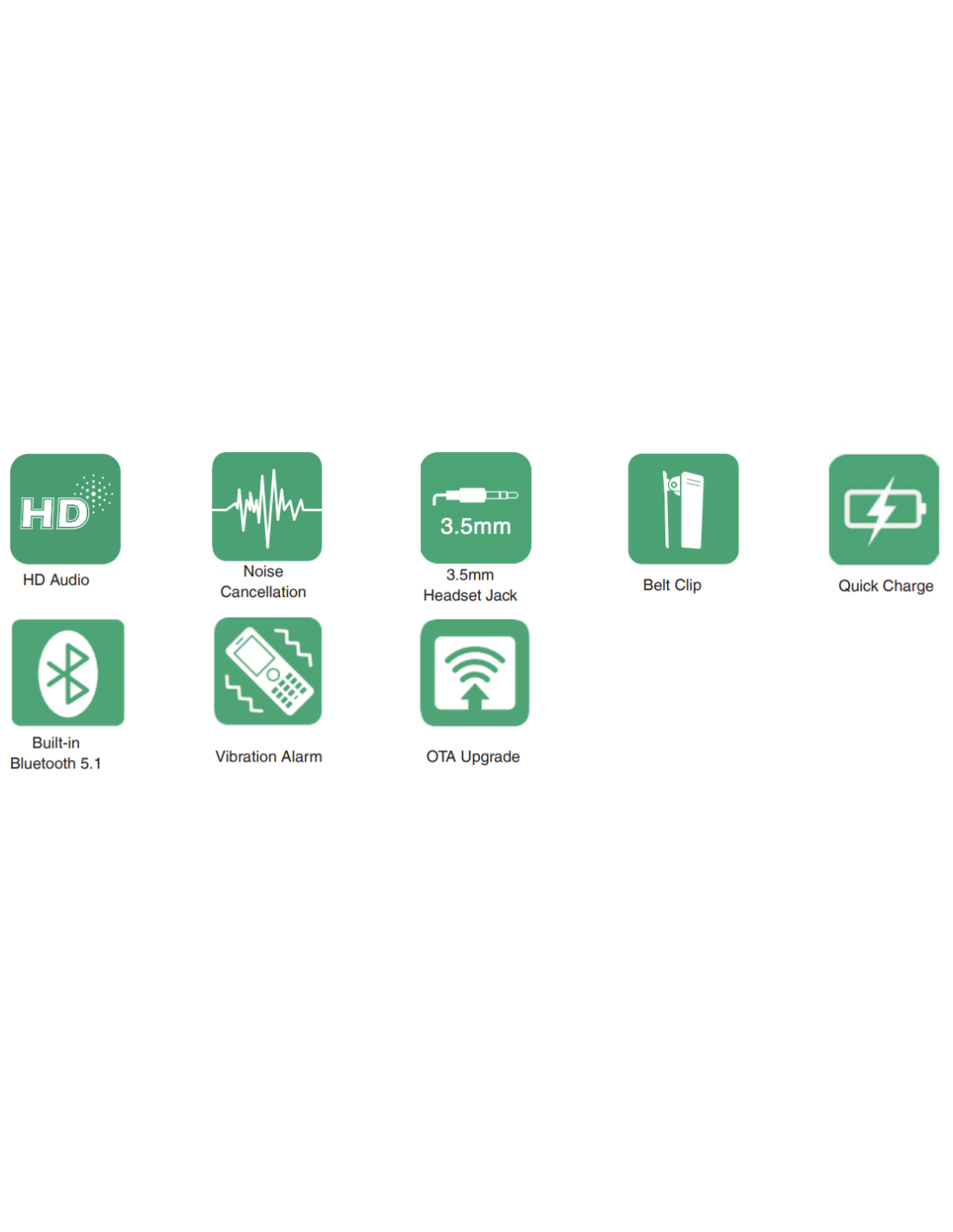 - Vibratie-alarm voor wanneer de handset over gaat in lawaaierige omgevingen