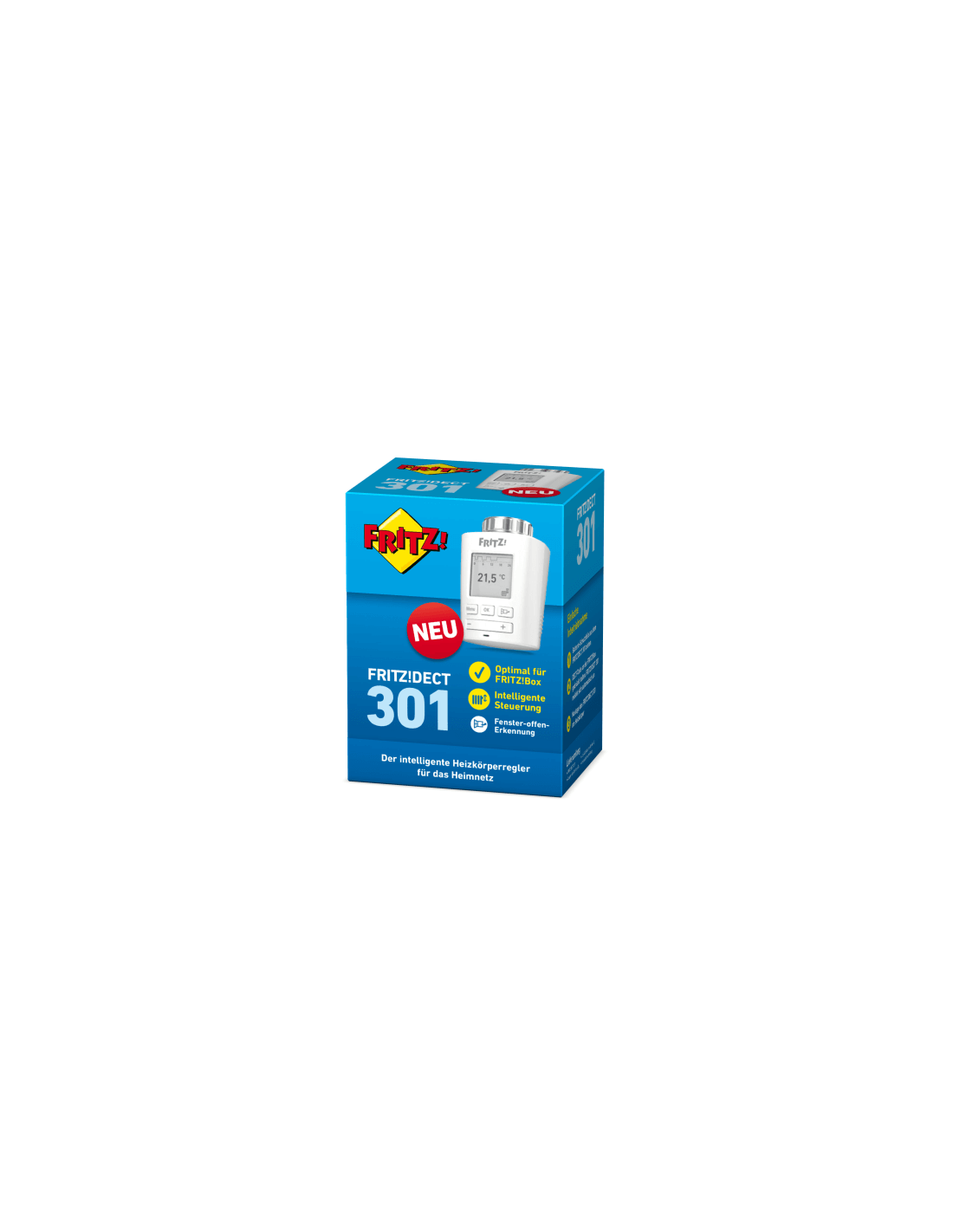 Verwarm je woning met een druk op de knop! Met de compact vormgegeven FRITZ!DECT 301 adapter stuur je de CV / radiator van de verwarming thuis of op kantoor intelligent aan. Integreer de FRITZ!DECT 301 in enkele minuten in je thuisnetwerk: plaats de batterijen, druk op de DECT-knop op uw FRITZBox om hem aan te melden en plaats de knop op uw radiator. En klaar! De DECT 301 communiceert via een beveiligde DECT verbinding met de FRITZ!Box.