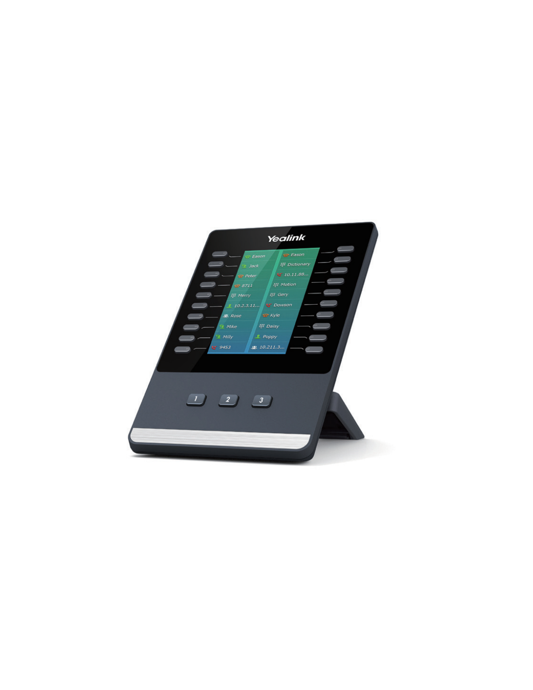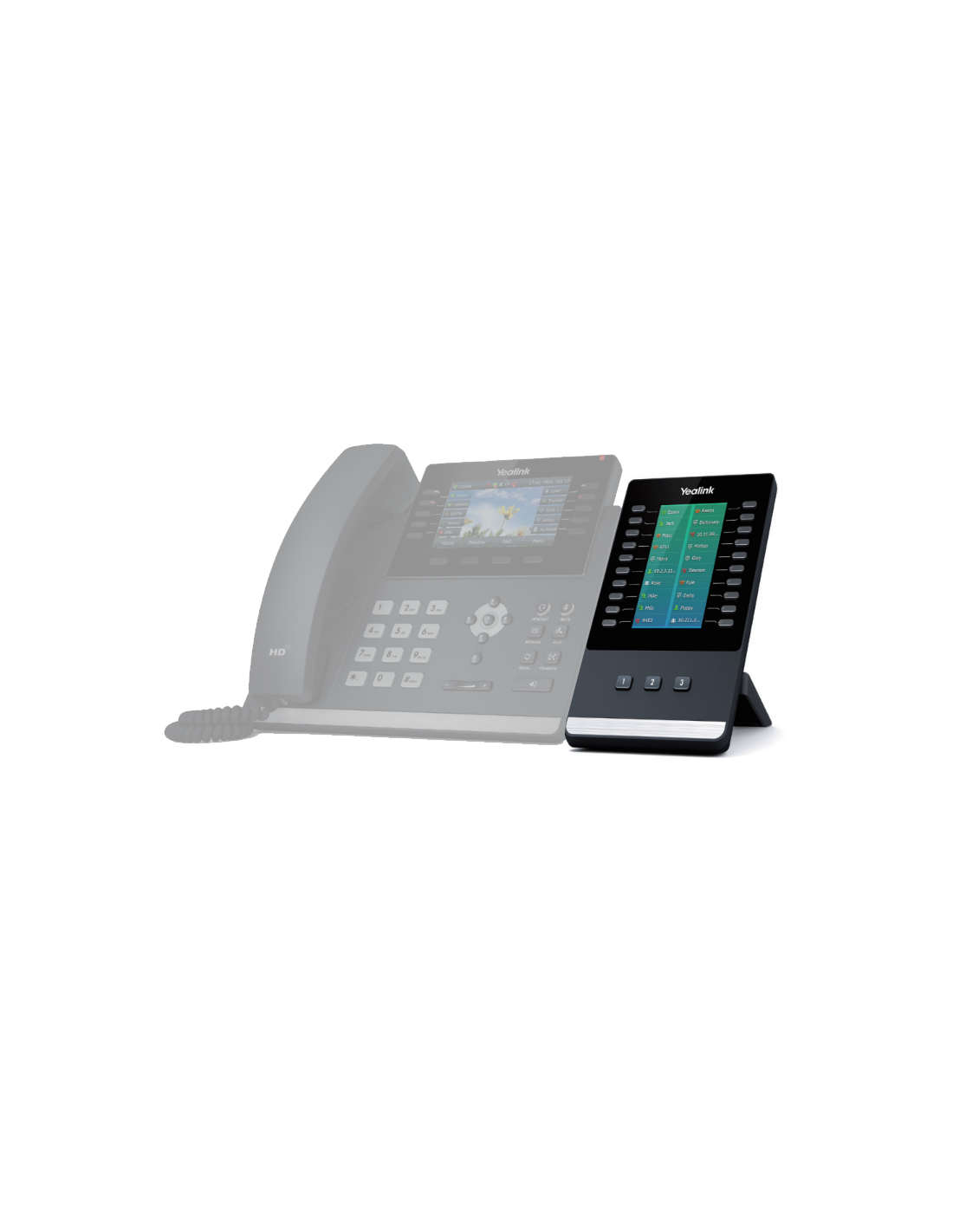 De Yealink EXP50 Expansion Module breidt het aantal snelkeuzetoetsen van uw Yealink VoIP telefoon uit met maar liefst 60 extra snelkeuzetoetsen. Per pagina kunnen 20 snelkeuzetoetsen worden getoond en met de toetsen onder het scherm kan er door de pagina's worden gebladerd. Aan één expansion module niet genoeg? Er kunnen maximaal drie expansion modules achter elkaar worden geplaatst voor maximaal 180 extra snelkeuzetoetsen. Ideaal voor receptietoestellen!