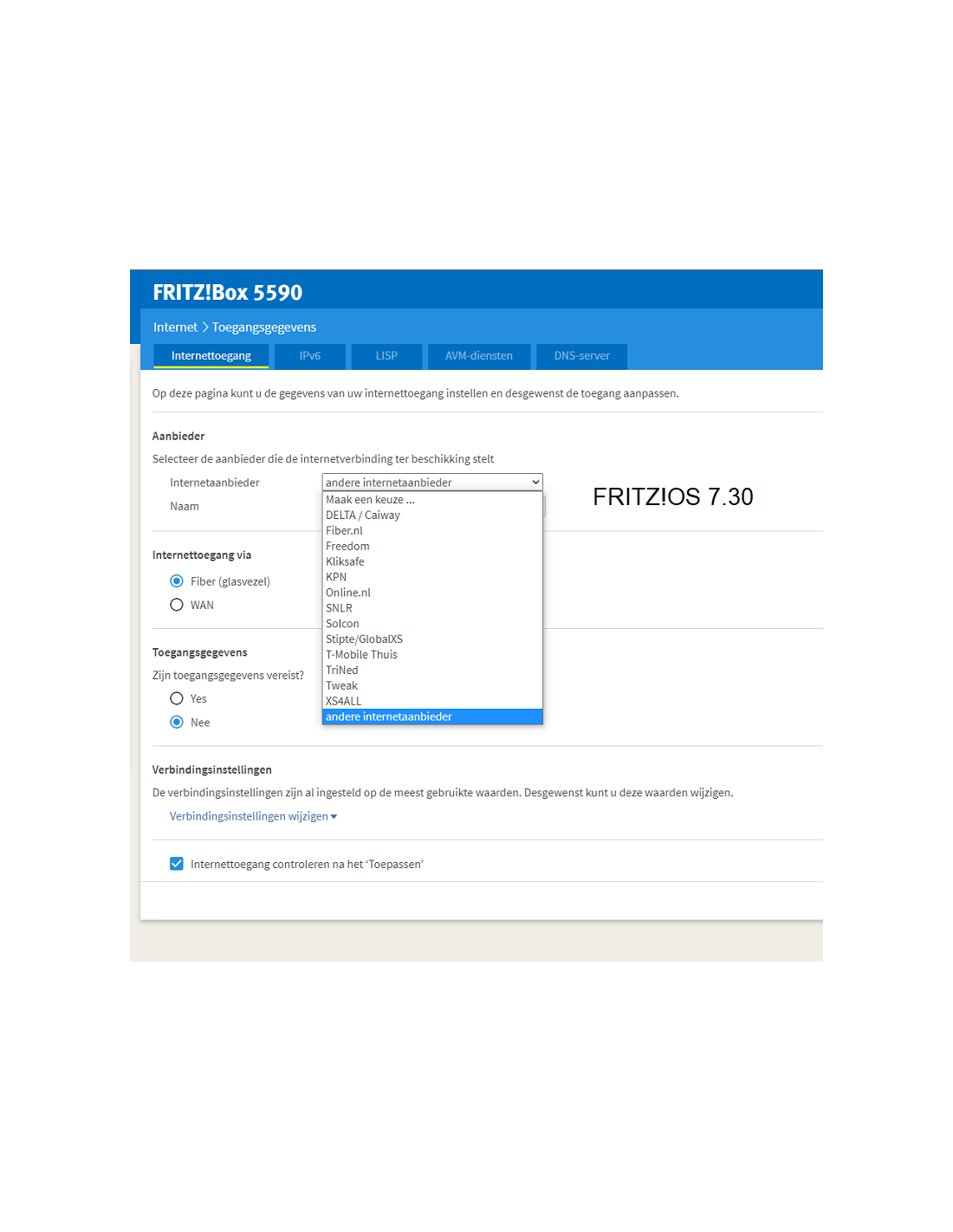 • FRITZ!Box 5590 Fiber configureren: instructie voor verschillende providers