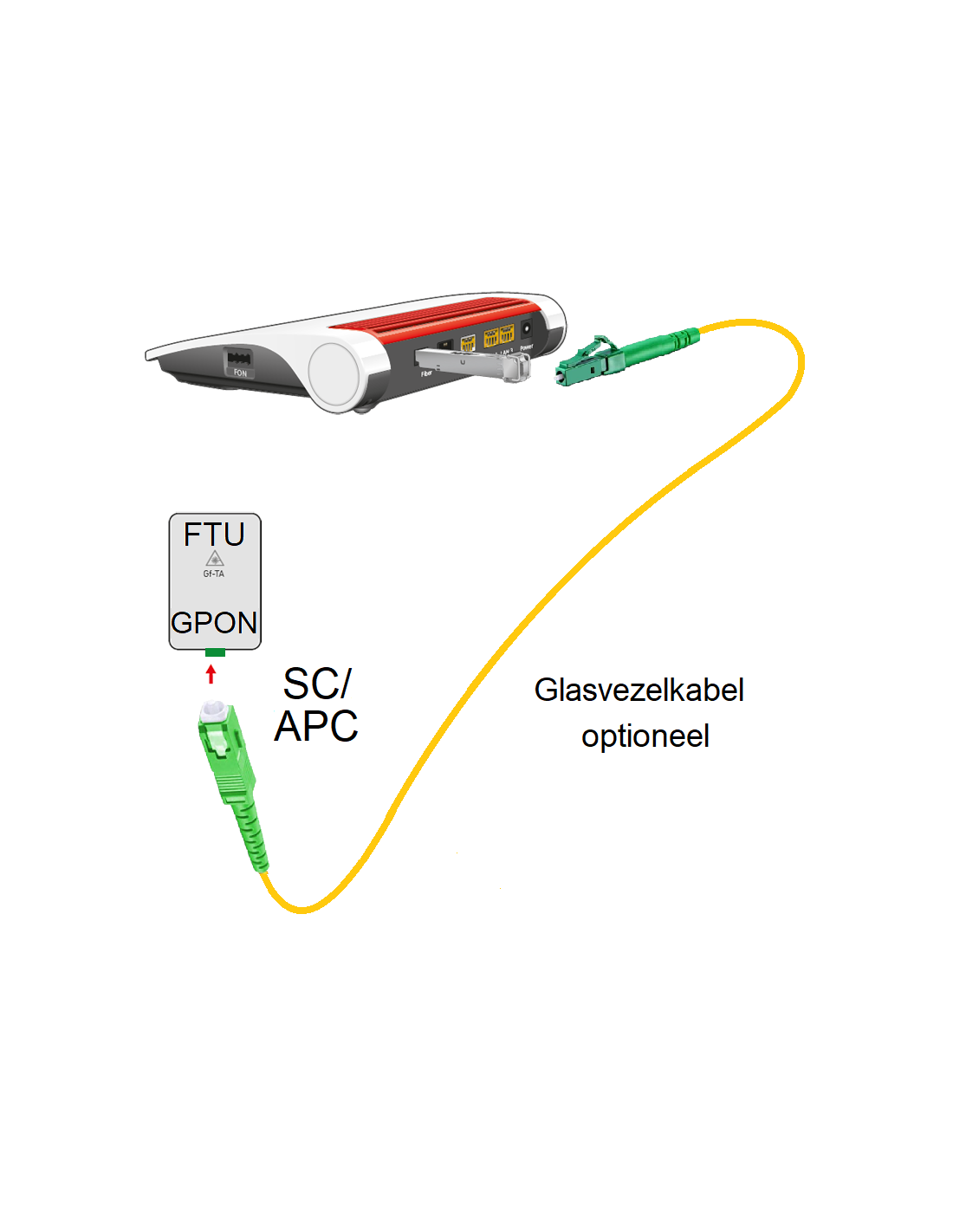 De glasvezel-aansluiting op de muur bepaald welke glasvezelkabel en/of patch cover er nodig is. Bepaal het type glasvezel-aansluiting op de muur en bestel de juiste glasvezelkabel en/of patch cover. De volgende glasvezel en/of patch cover heeft u nodig voor de glasvezel-aansluiting op de muur:
