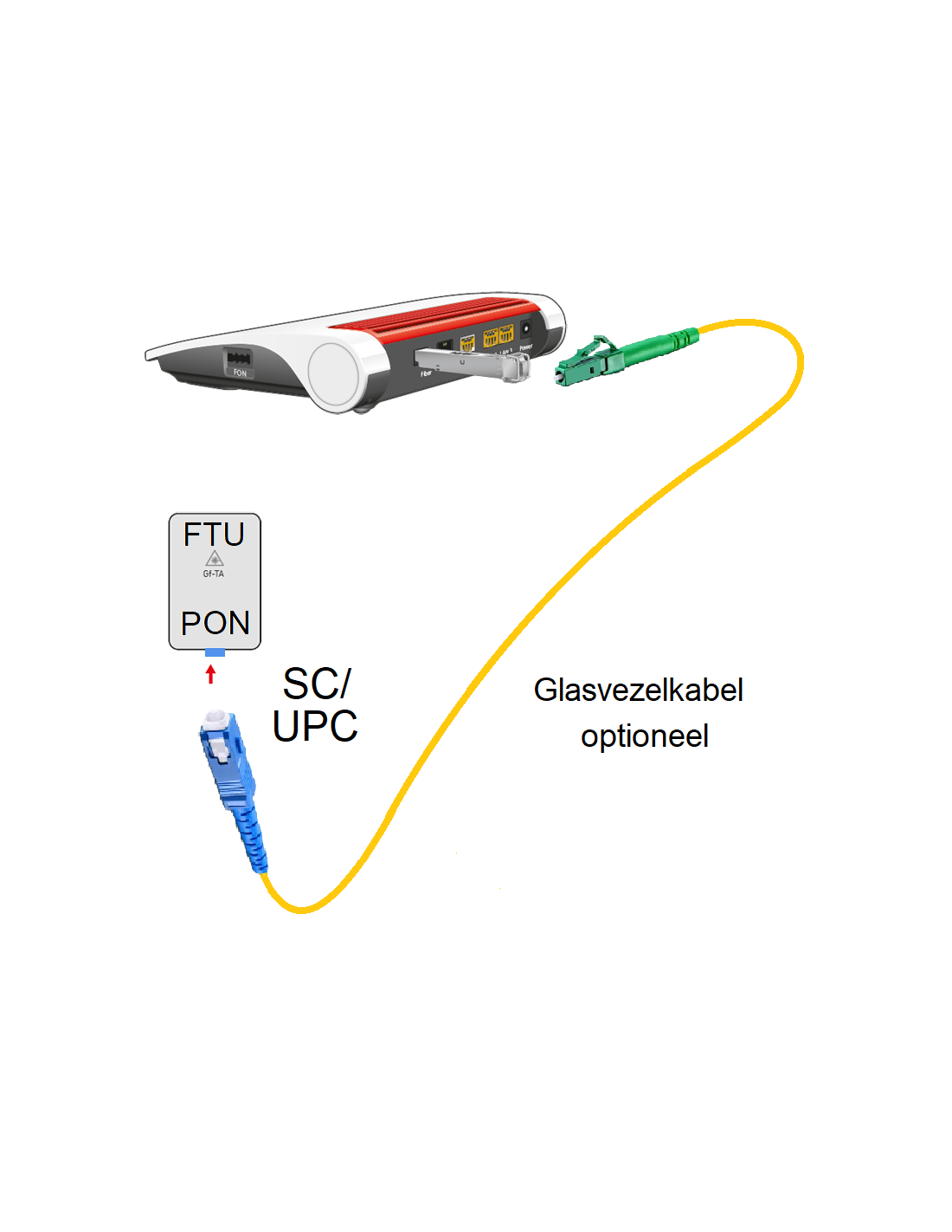 De glasvezel-aansluiting op de muur bepaald welke glasvezelkabel en/of patch cover er nodig is. Bepaal het type glasvezel-aansluiting op de muur en bestel de juiste glasvezelkabel en/of patch cover. De volgende glasvezel en/of patch cover heeft u nodig voor de glasvezel-aansluiting op de muur: