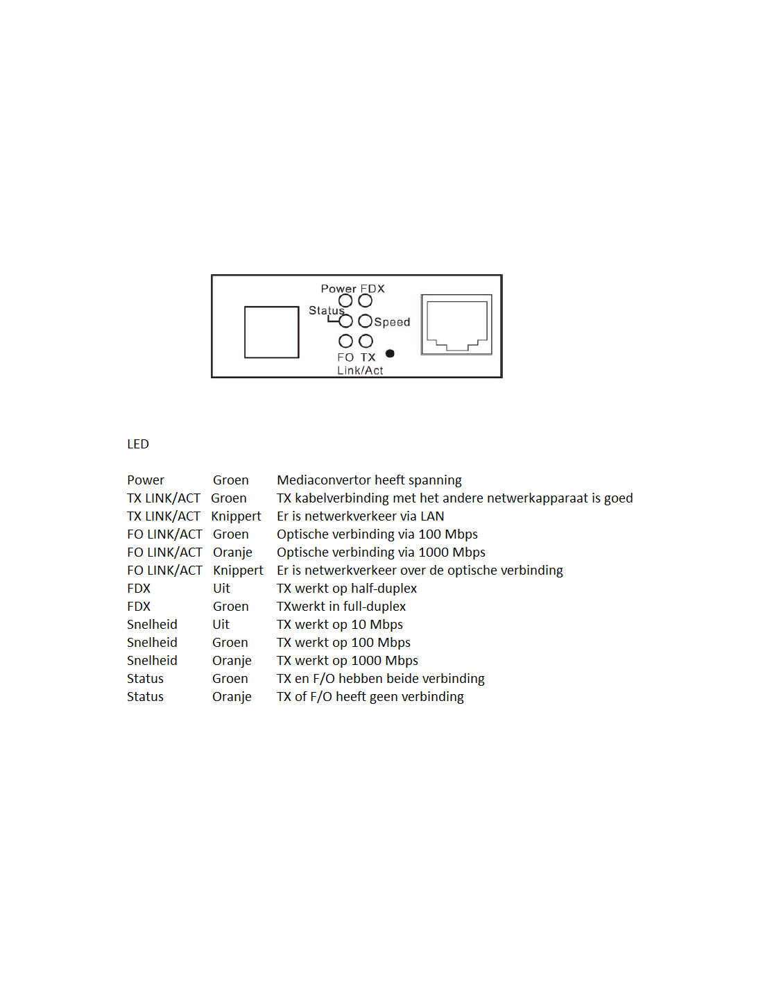 - Wanneer de TX Link/ACT LED en de F/O Link/ACT LED gaan branden is er een succesvolle verbinding