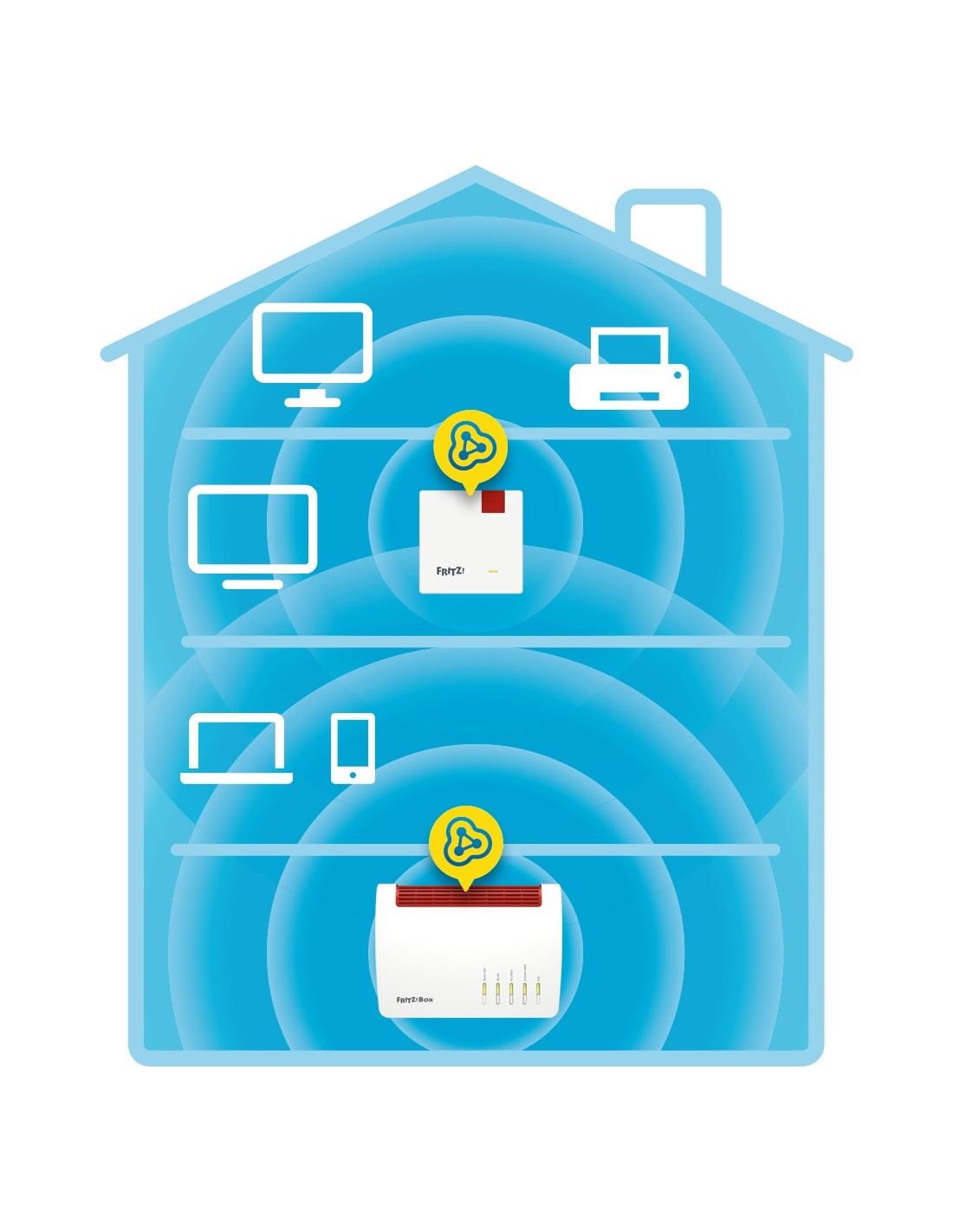 - Bij FRITZ!Repeater staat geen Mesh-pictogram