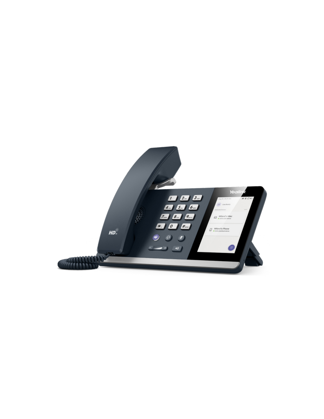 De Yealink MP50 USB Phone is gecertificeerd voor Microsoft Teams en een ideaal toestel voor thuiswerkers. De Yealink MP50 USB Phone beschikt over een 4 inch verlicht kleurenscherm met aanraakscherm, ingebouwde tweevoudige USB-A 3.0 hub, USB-A 3.0 aansluiting voor de computer / laptop, ingebouwd telefoon-toetsenbord, ingebouwde Bluetooth, optioneel ook te voorzien van Bluetooth via de Yealink BT50 voor extra functionaliteit en optionele busylight BLT60 om visueel aan te tonen in uw omgeving dat u in gesprek bent.