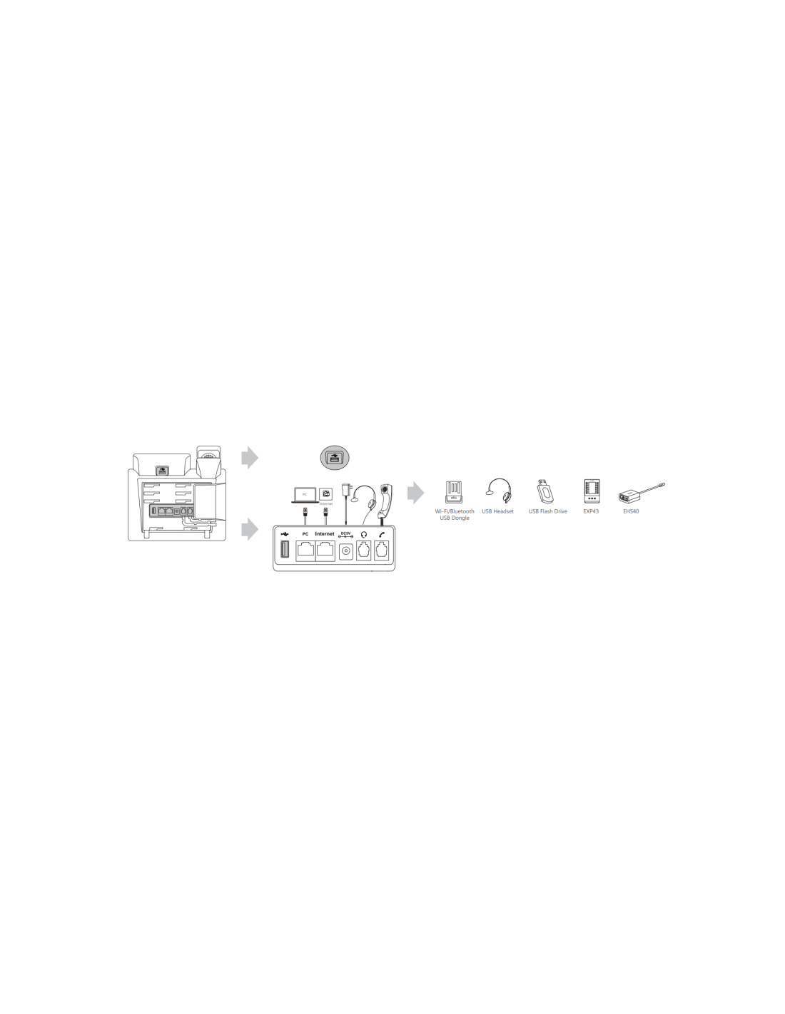 - 2 x USB-poort voor bv WiFi (WF40/WF50), Bluetooth (BT40/BT41), of Yealink USB headset
