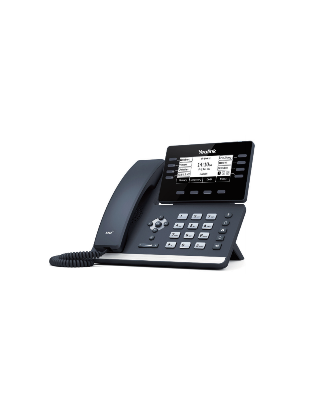 De Yealink T53W is het instapmodel voor de nieuwste generatie VoIP Phones van Yealink. Naast Optima HD voice technology, beschikt de T53W ook over de Opus codec. Deze codec zorgt voor duidelijke geluidskwaliteit zelfs tijdens druk netwerkverkeer. De T53W beschikt over een verstelbaar scherm, 2 x Gigabit LAN, 1 x USB 2.0 (voor USB headset, dongle of Expansion Module), ingebouwde Bluetooth en WiFi, headsetaansluiting en kan door middel van Power-over-Ethernet (PoE) via de LAN-kabel worden gevoed. Beschikt u niet over een PoE switch, dan is de T53W met een 5 VDC - 1.2 A voedingsadapter (optioneel verkrijgbaar, zie het tab Accessoires) van voeding te voorzien.
